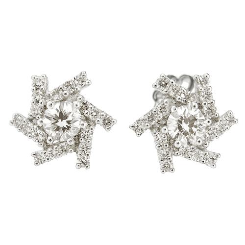 These earrings sparkle like tiny stars, with a central diamond of pure eternity embraced by a cluster radiating strength and elegance.