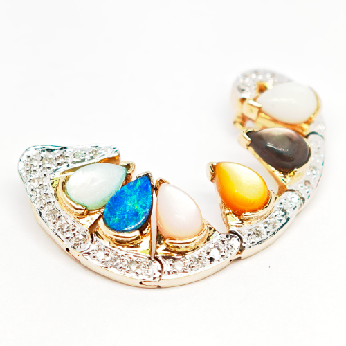 14K Yellow Gold Diamond, Opal & Mop Detachable Pendant