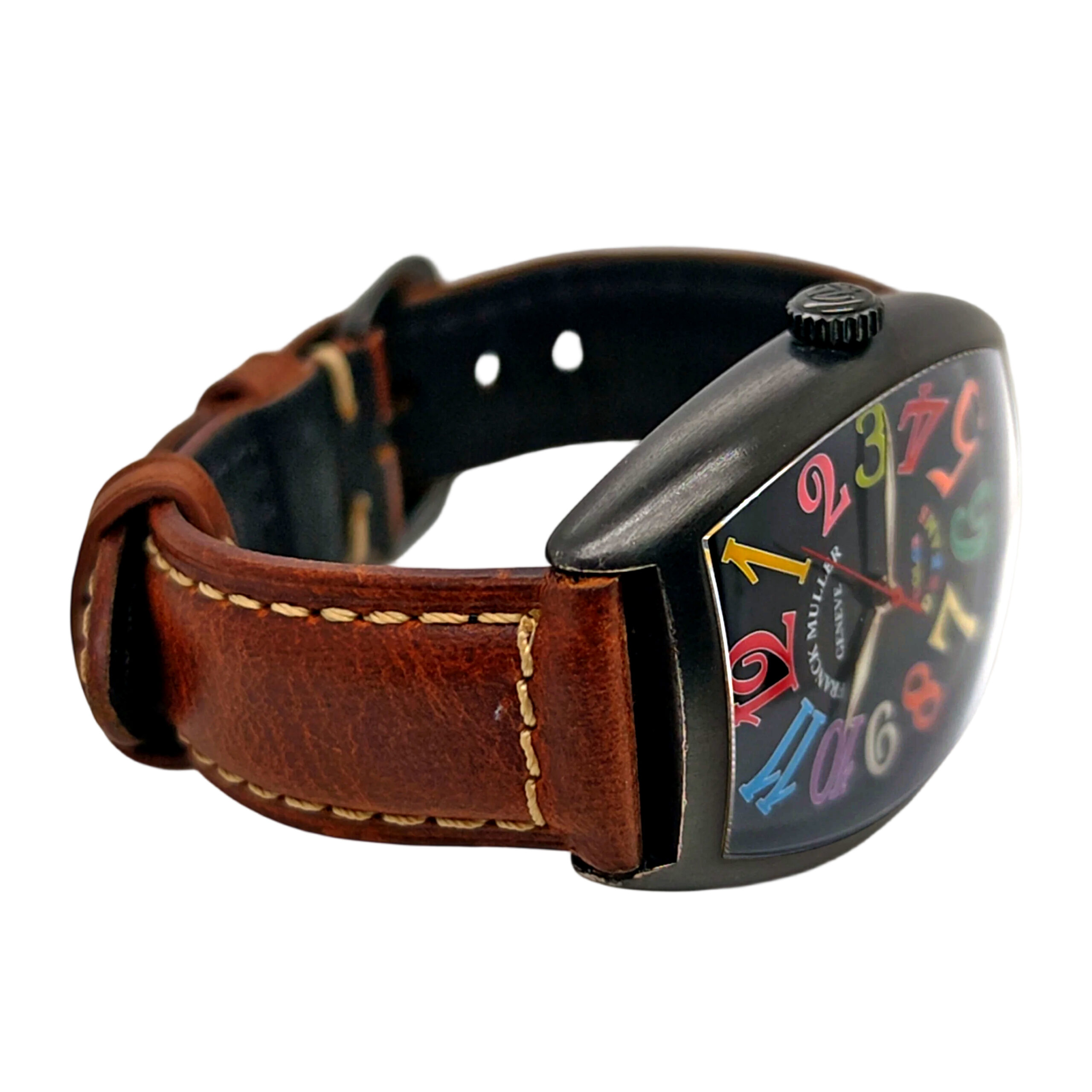 This 18K Black Rhodium Franck Muller Color Dream watch. Its SKU code is JW251LS02. The watch is AUTOMATIC with the main materials YELLOW GOLD. The case diameter is 34MMX47MM.