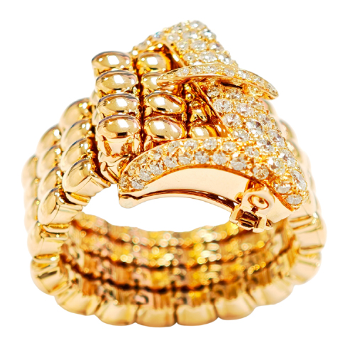 Gold links sculpt a commanding silhouette, crowned with a diamond-set buckle for an effortless aura of power and poise.