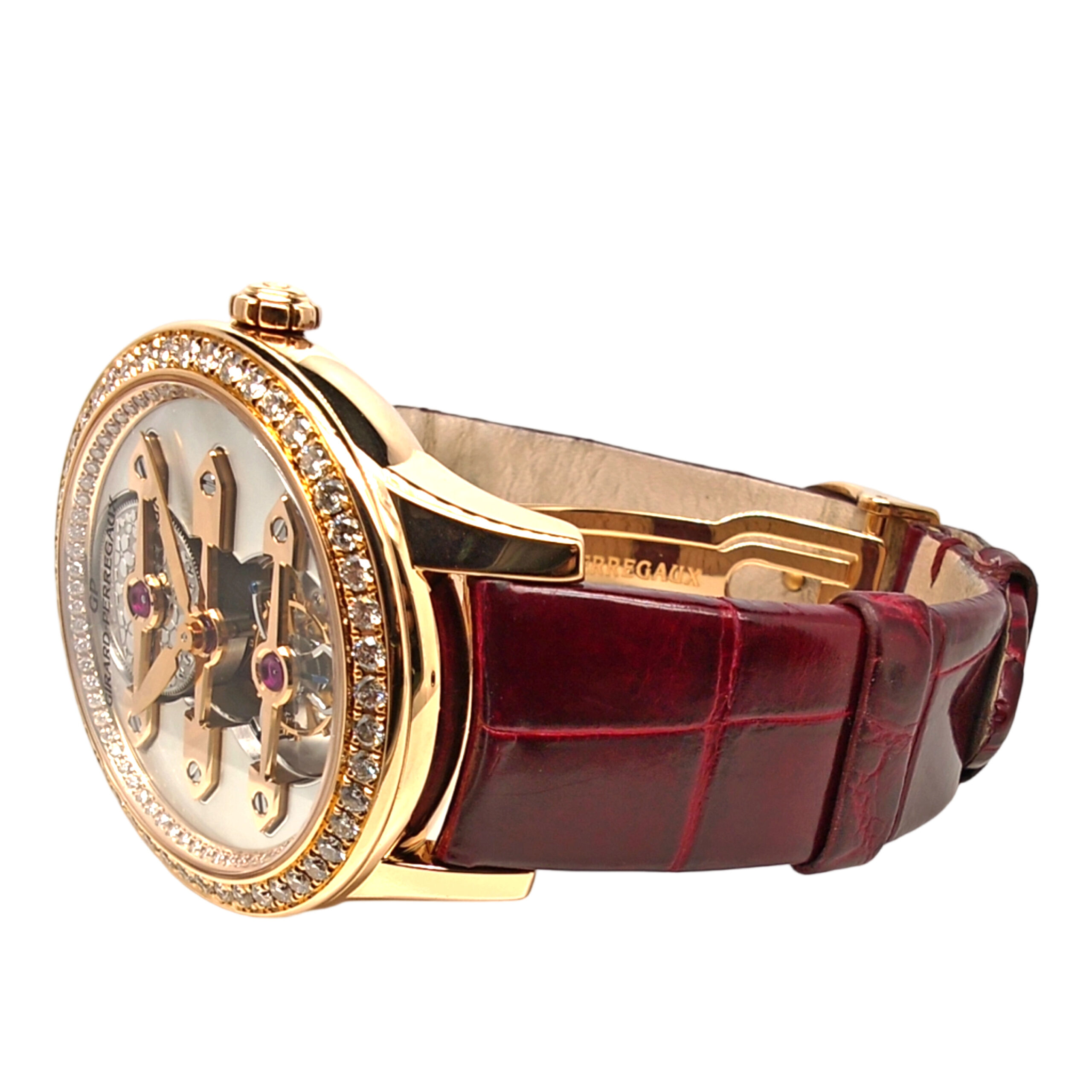 This 18K Rose Gold Girard-Perregaux Bridges Diamond watch. Its SKU code is JW250L702. The watch is MANUAL WINDING with the main materials ROSE GOLD. The case diameter is 38MM.