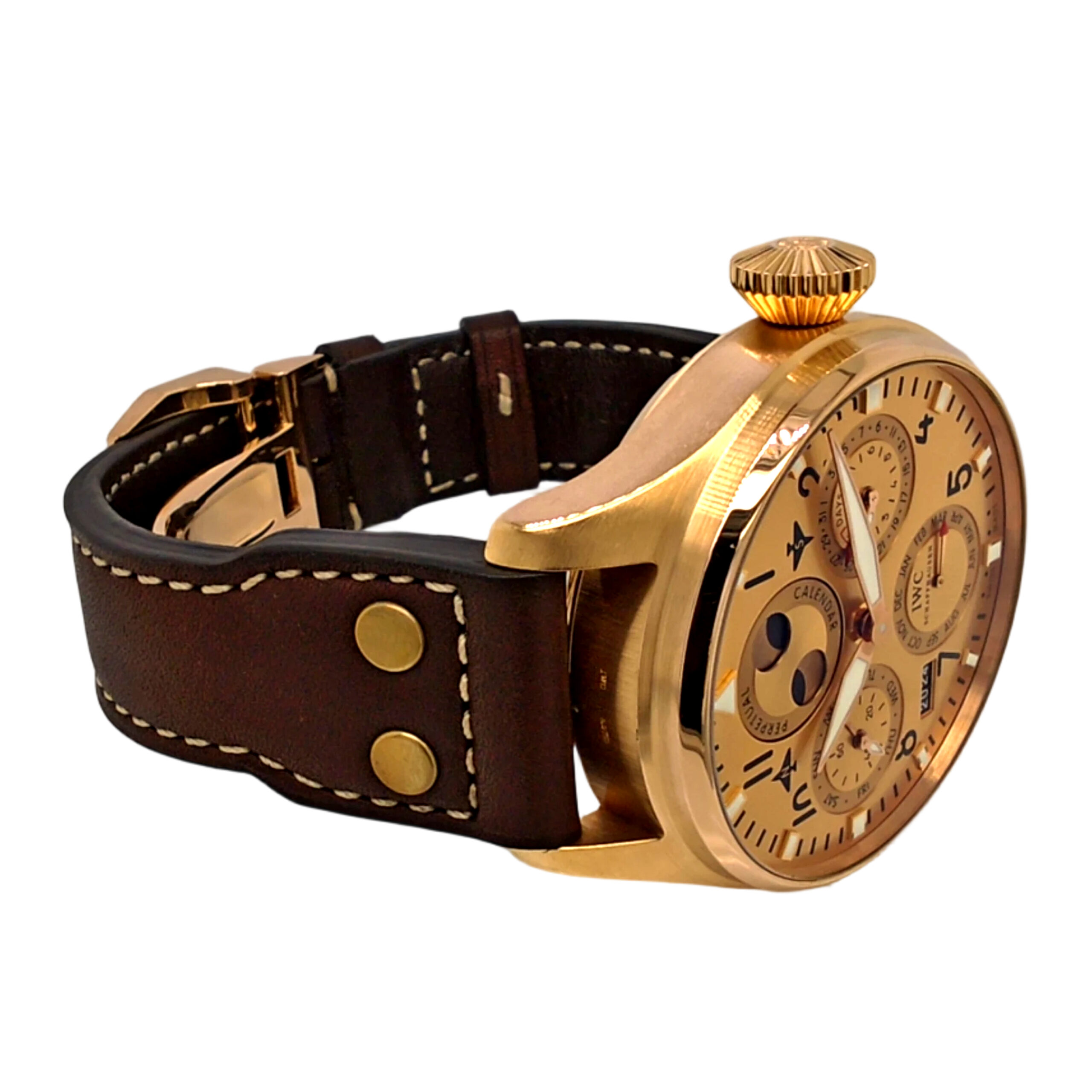 This 18K Rose Gold IWC Big Pilot watch. Its SKU code is JW251SN07. The watch is AUTOMATIC with the main materials ROSE GOLD. The case diameter is 46MM.