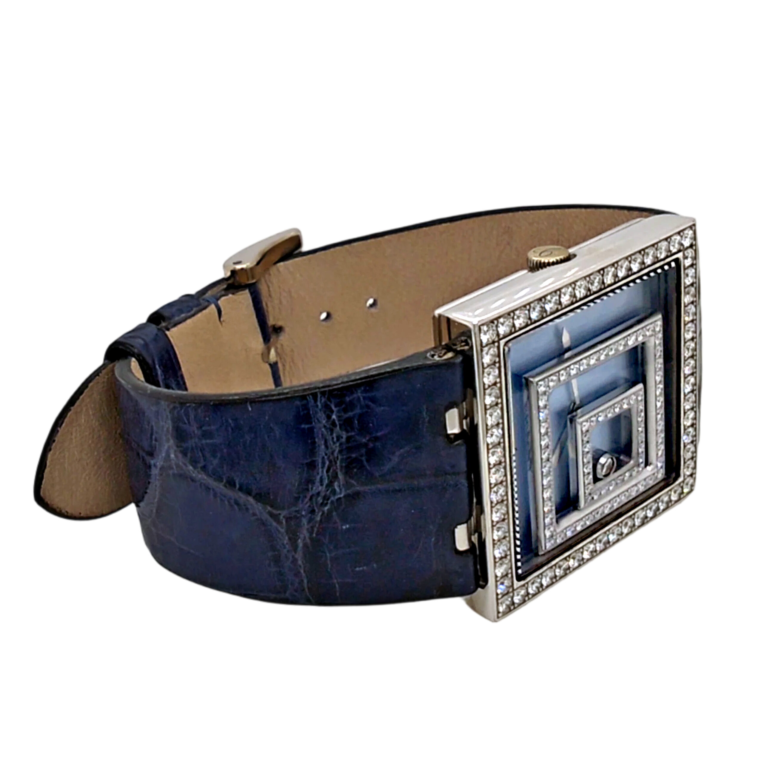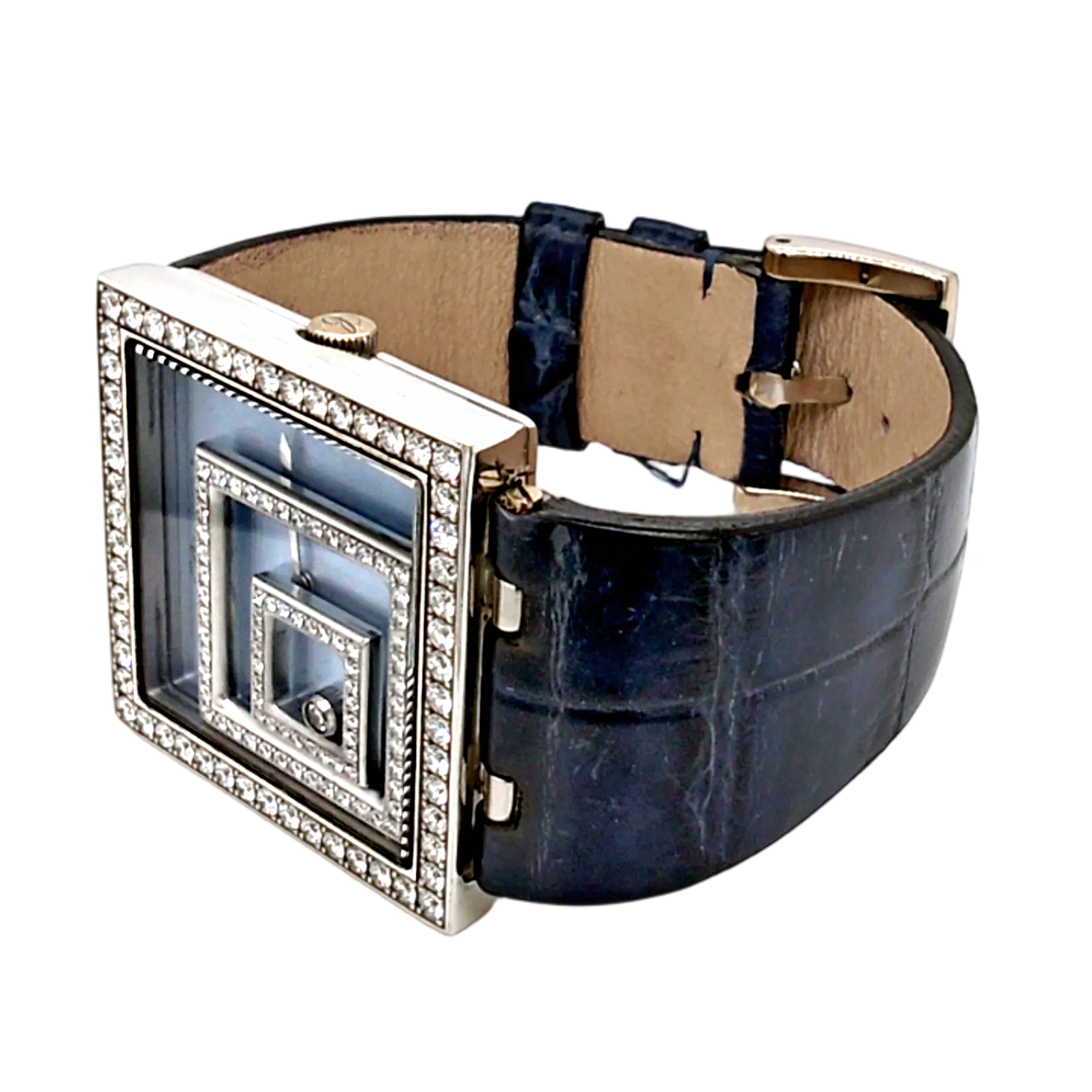 This 18K White Gold Chopard Happy Spirit Diamond watch. Its SKU code is JW251XM01. The watch is QUARTZ with the main materials WHITE GOLD. The case diameter is 30MM.