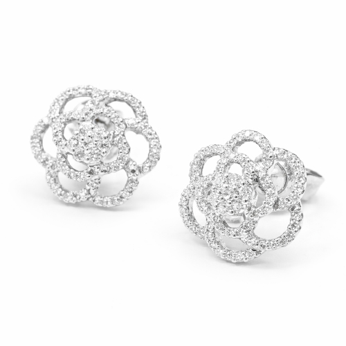 A pavé set camellia in silver light—the definitive hallmark of a blossoming grace.