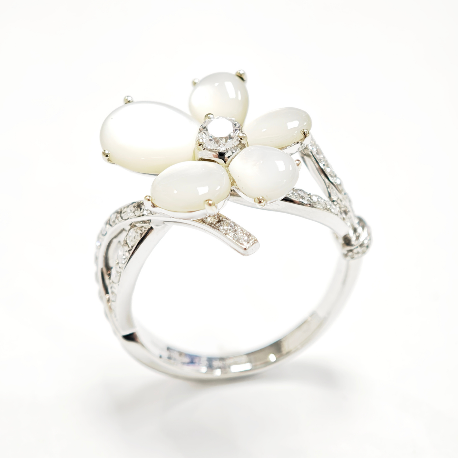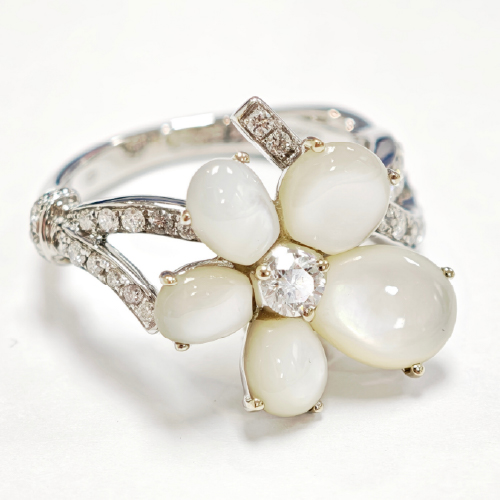 18K White Gold Diamond & Mother of Pearl Marked Mauboussin Ring