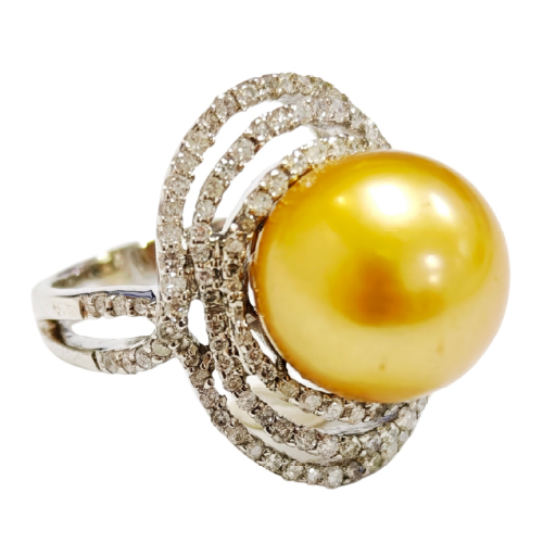 18K White Gold Diamond & Pearl Ring