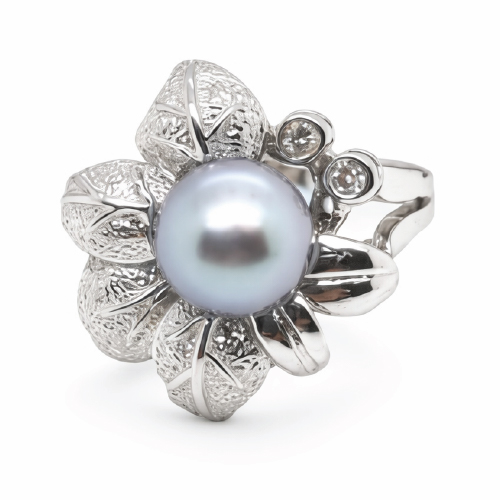 18K White Gold Diamond Pearl Ring