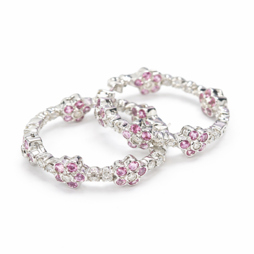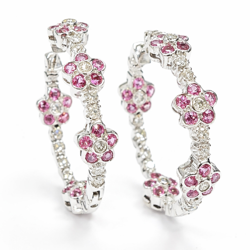 18K White Gold Diamond & Pink Sapphire Loop Earring
