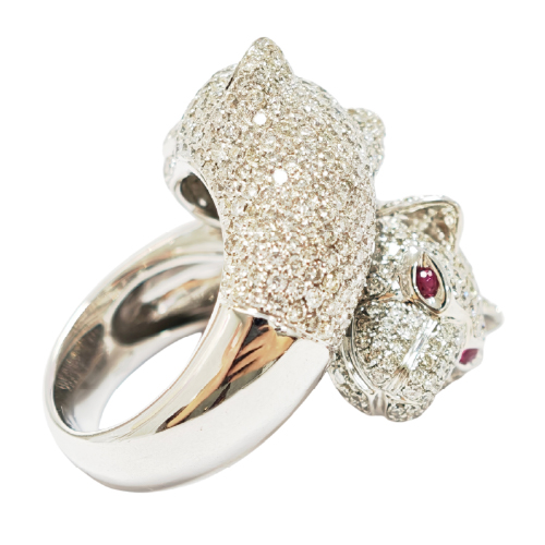 Two leopards face off, diamonds radiate power, and ruby eyes blaze with command.