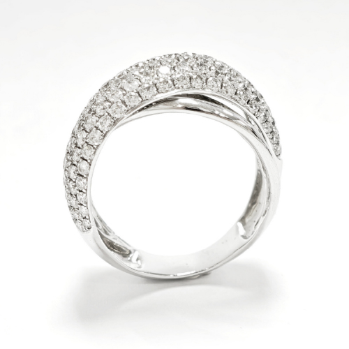 This white gold diamond ring features intertwined curves and pavé diamonds, radiating subtle elegance and refined brilliance.