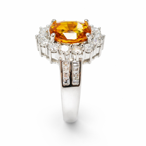 A solar brilliance of Yellow Sapphire in a diamond halo—the radiant heart of a grand entrance.