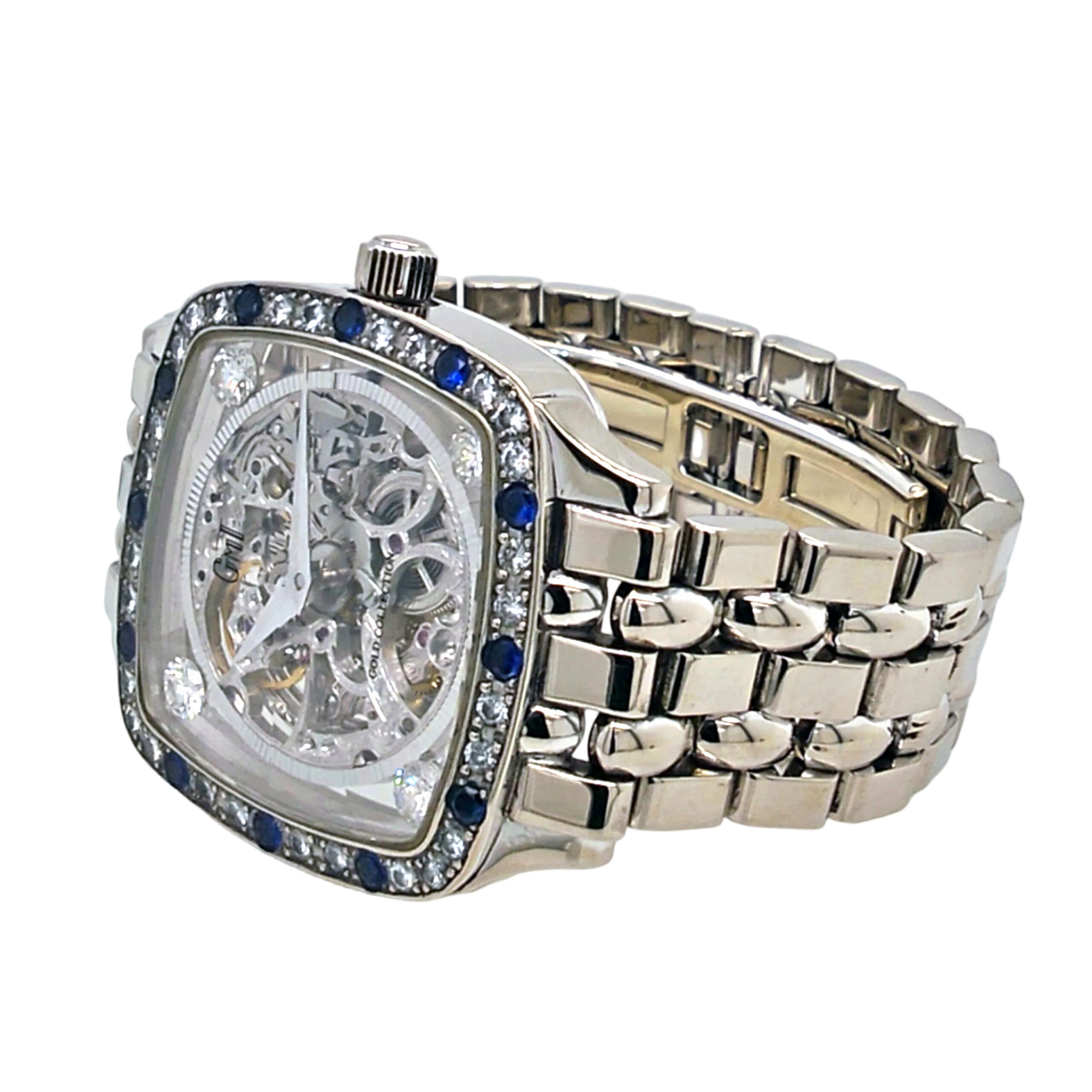 This 18K White Gold GMT Gold Collection ‘AT’ Diamond & Sapphire watch. Its SKU code is JW251A901. The watch is AUTOMATIC with the main materials WHITE GOLD. The case diameter is 33MM.
