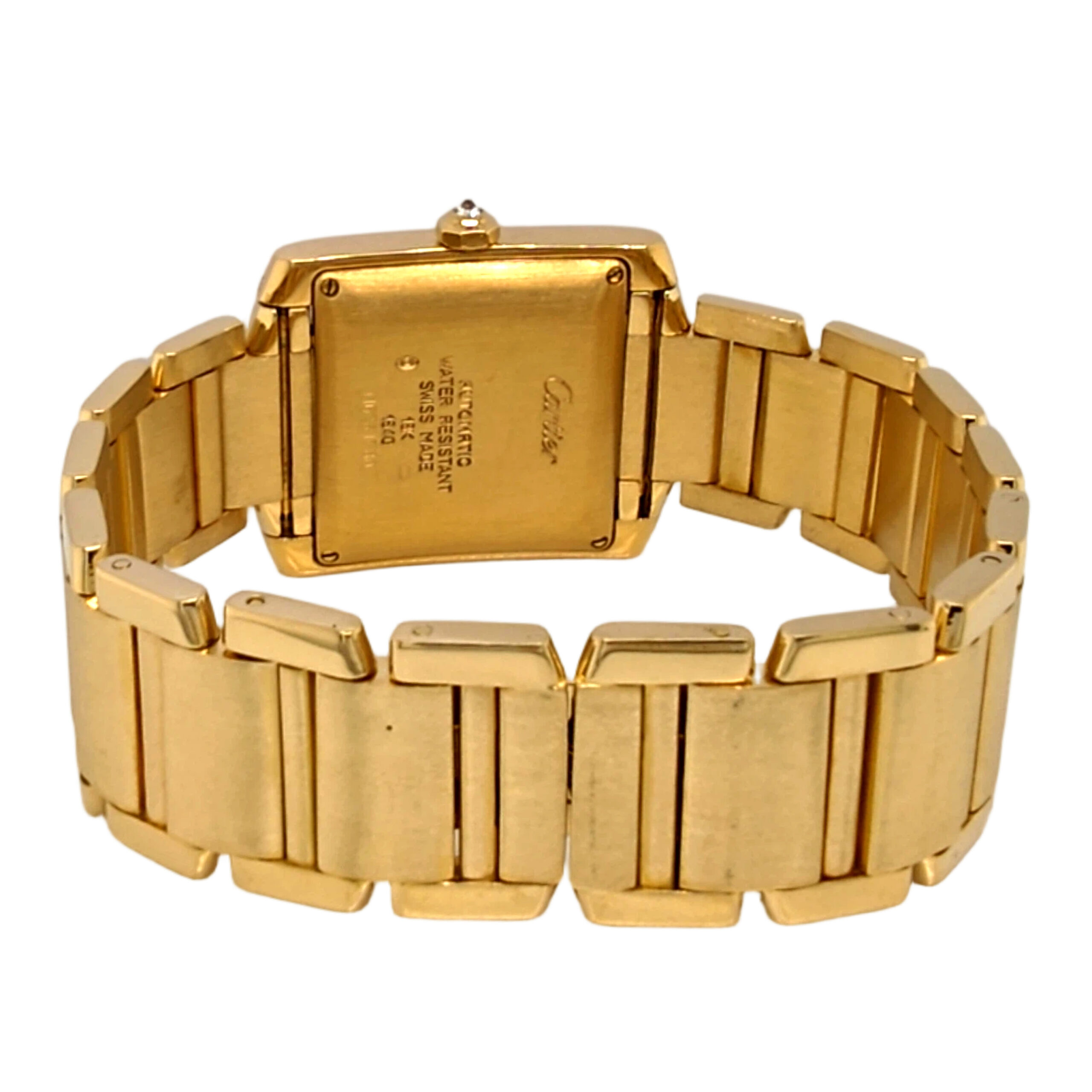 This 18K Yellow Gold Cartier Tank Francaise Diamond watch. Its SKU code is JW2524M01. The watch is AUTOMATIC with the main materials YELLOW GOLD. The case diameter is 28X32MM.
