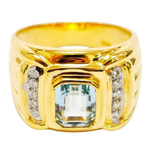 18K Yellow Gold Diamond & Aquamarine Ring 2 Tone