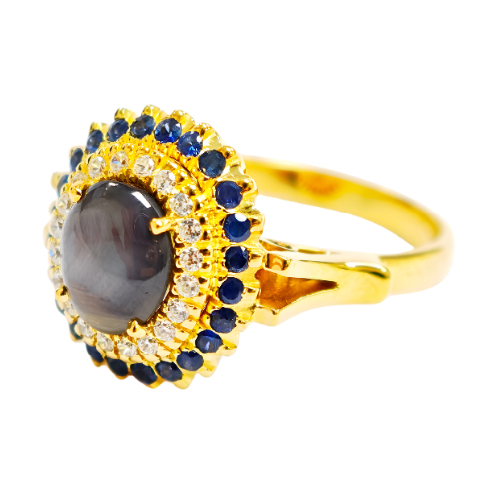 A celestial glow framed in gold — elegance with a quiet, commanding presence.