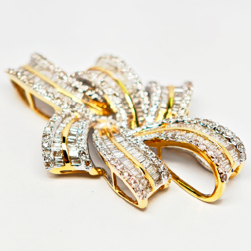 A radiant brooch, where diamonds and gold bloom like light symbolizing elegance and vitality.