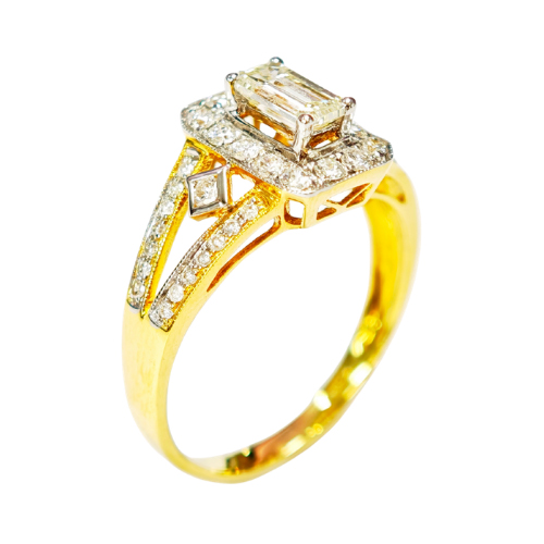 18K Yellow Gold Diamond Ring Two Tone