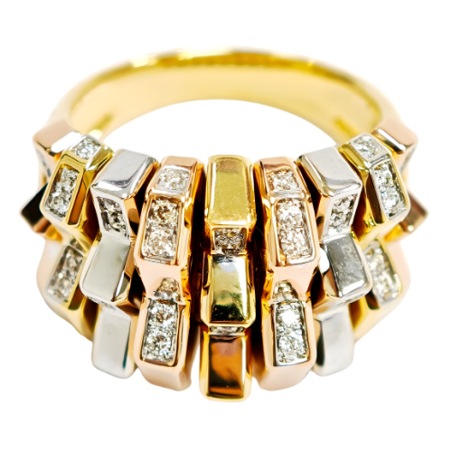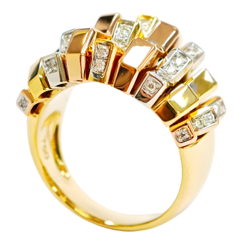 Gold and diamonds rise in sculptural rhythm — a modern crown of light.