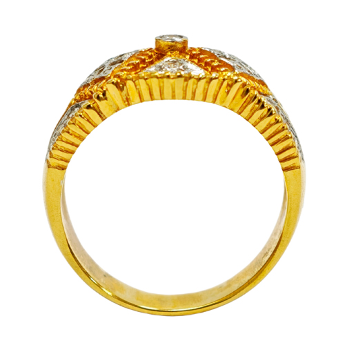 Interwoven gold lines form a regal rhythm, illuminated by diamonds with quiet grandeur.