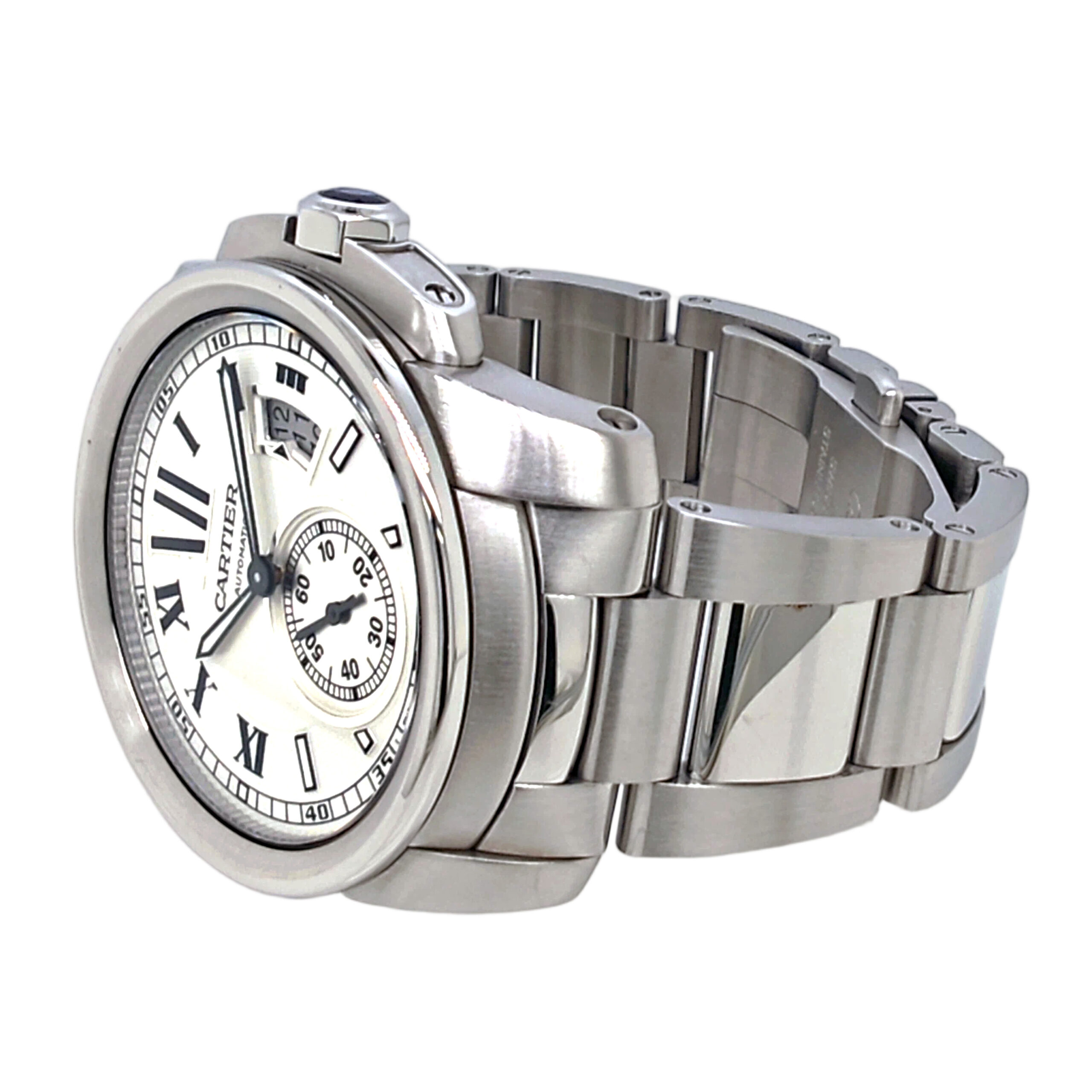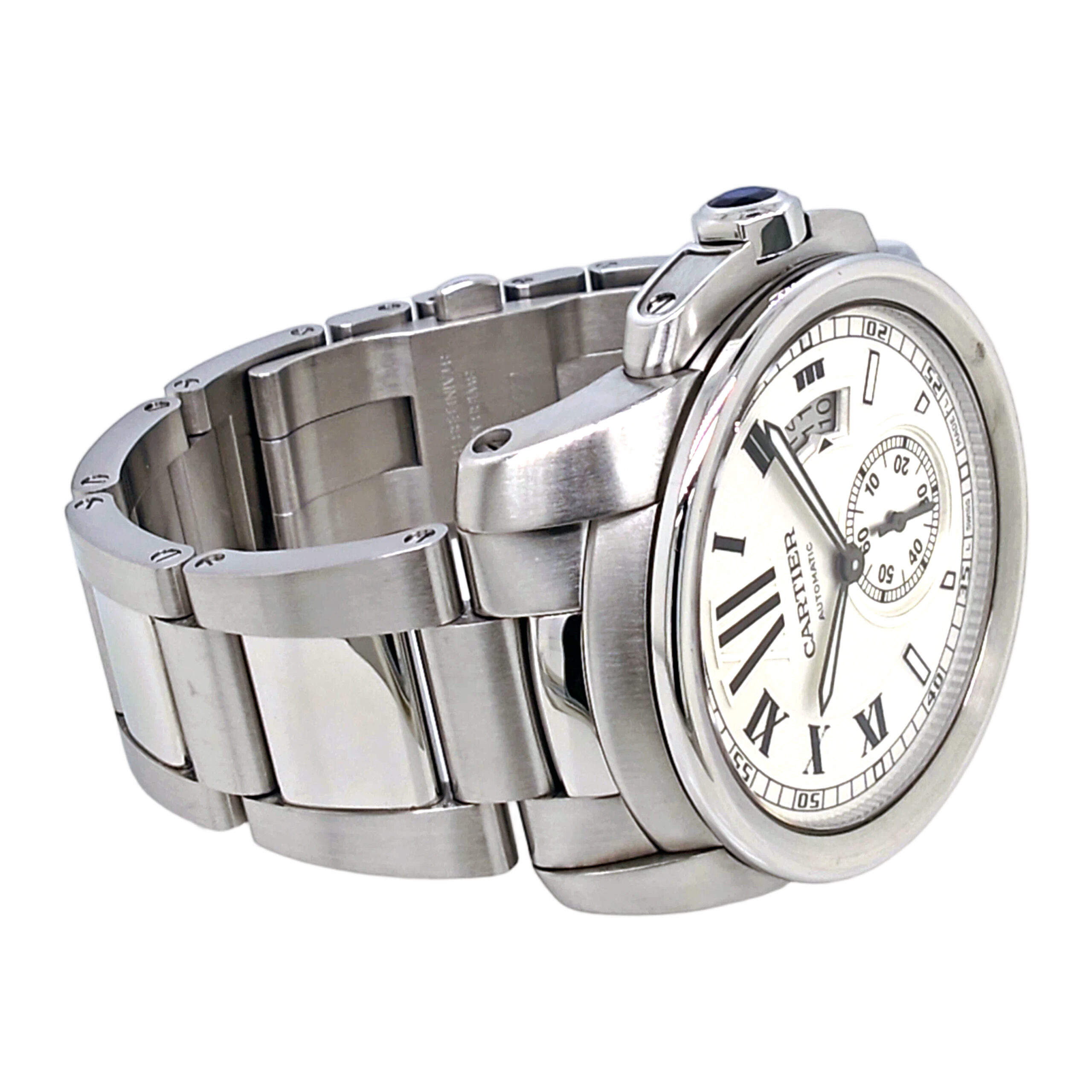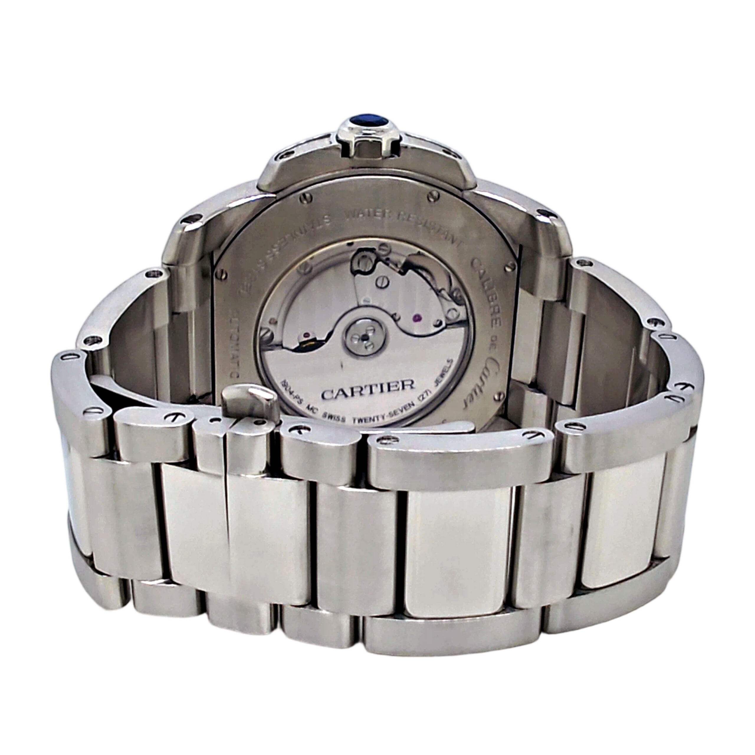 This Cartier Calibre De Cartier watch. Its SKU code is JW2529A02. The watch is AUTOMATIC with the main materials STAINLESS STEEL. The case diameter is 42MM.