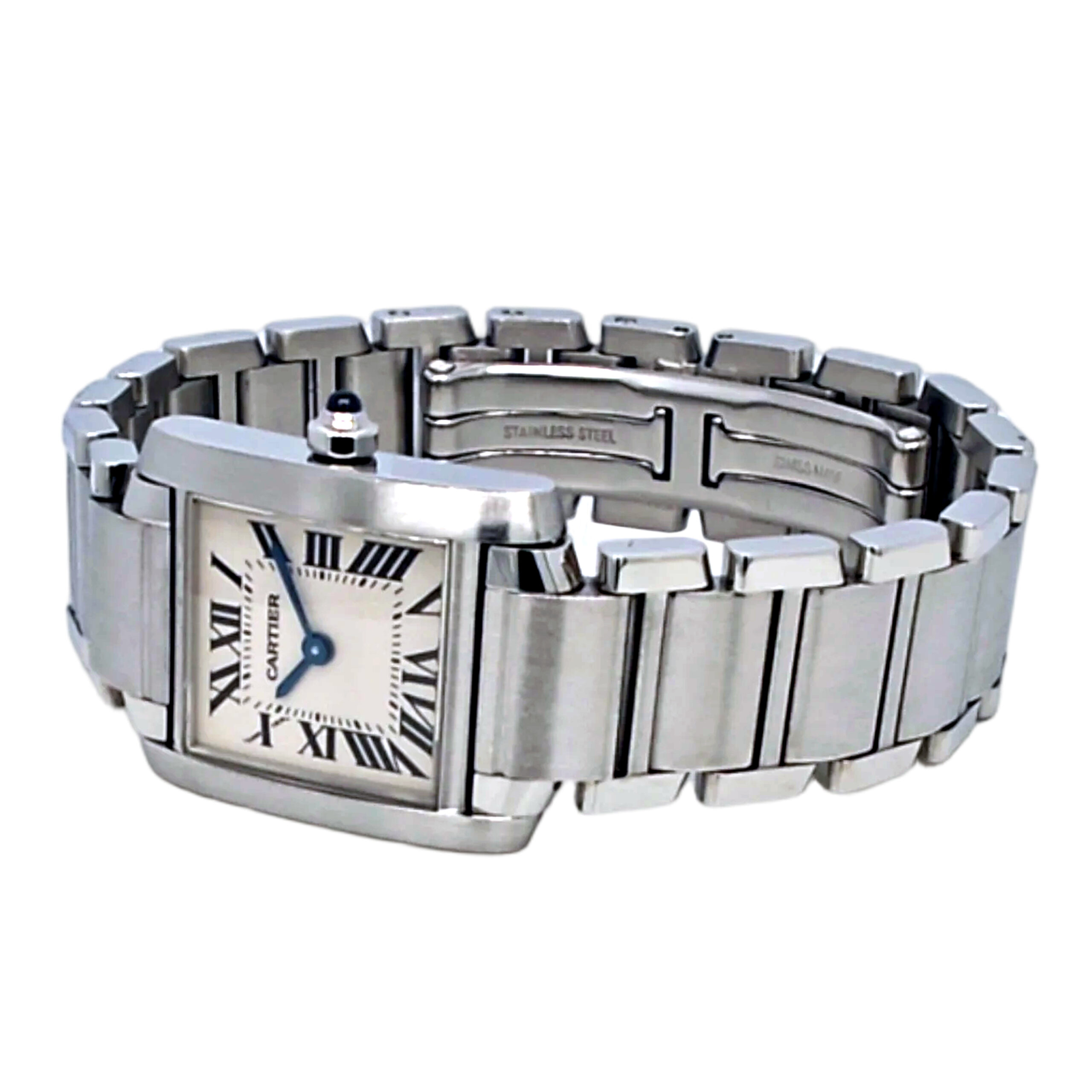 This Cartier Tank Francaise watch. Its SKU code is JW2517I01. The watch is QUARTZ with the main materials STAINLESS STEEL. The case diameter is 20MM.