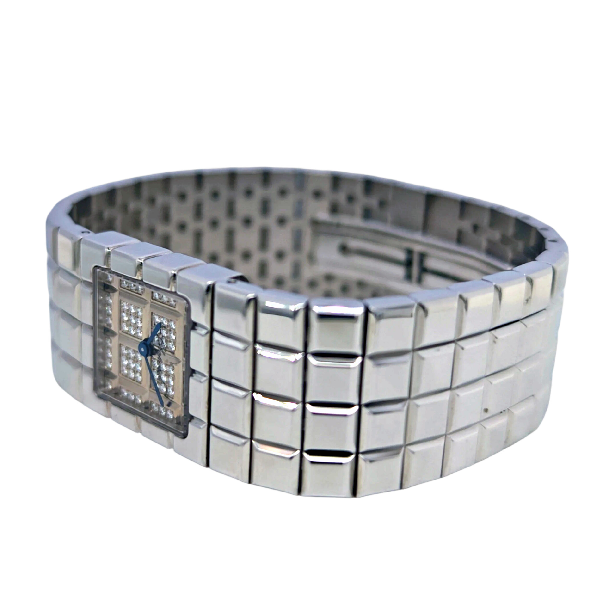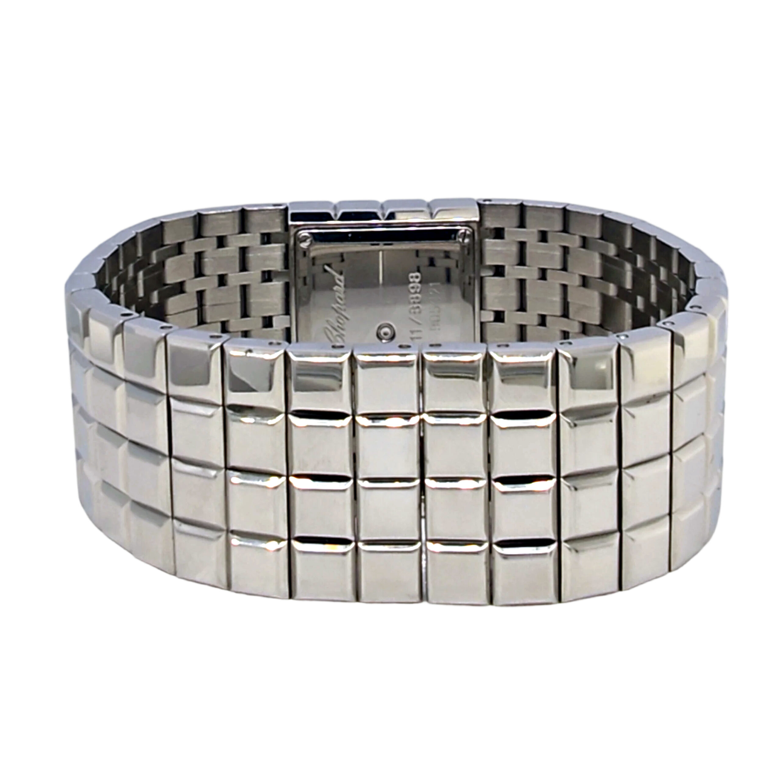 This Chopard Ice Cube Diamond watch. Its SKU code is JW251E803. The watch is QUARTZ with the main materials STAINLESS STEEL. The case diameter is 22MM.
