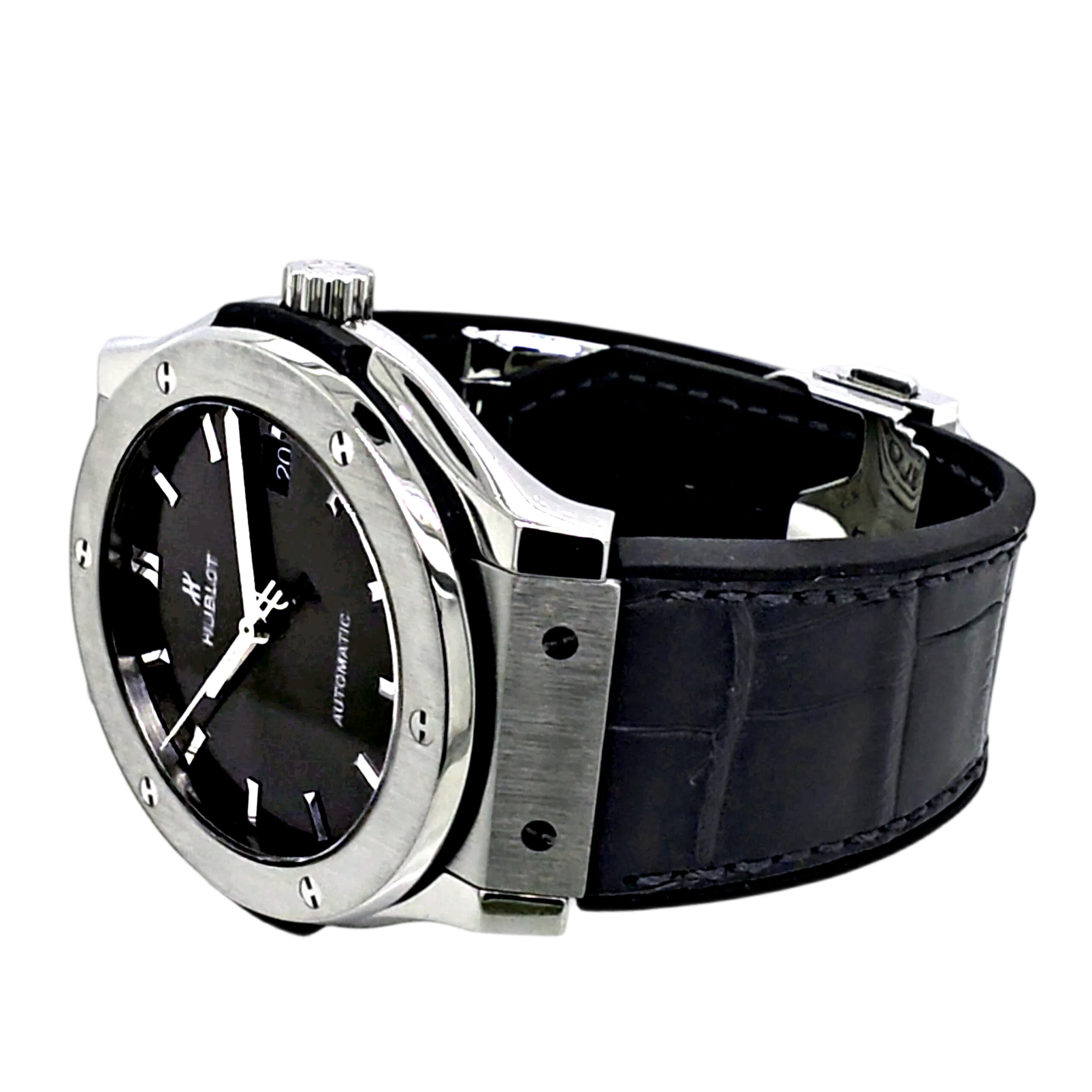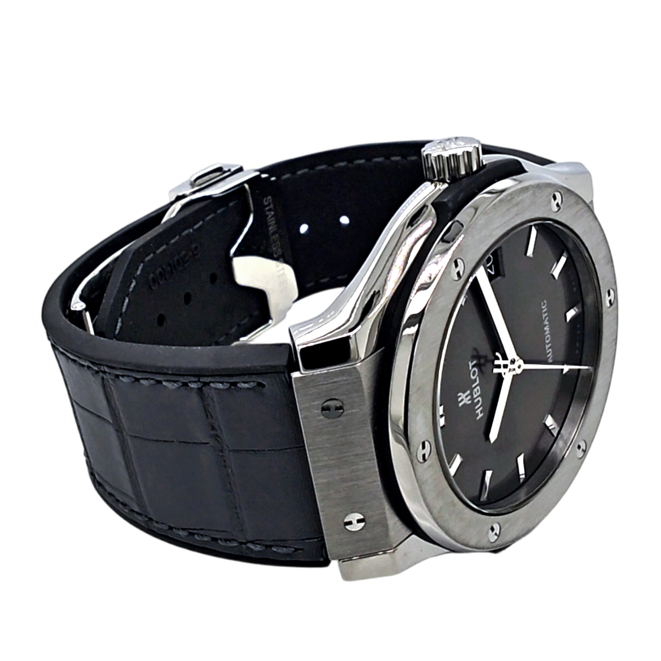 This Hublot Classic Fusion Racing Grey watch. Its SKU code is JW251SN04. The watch is AUTOMATIC with the main materials STAINLESS STEEL. The case diameter is 45MM.
