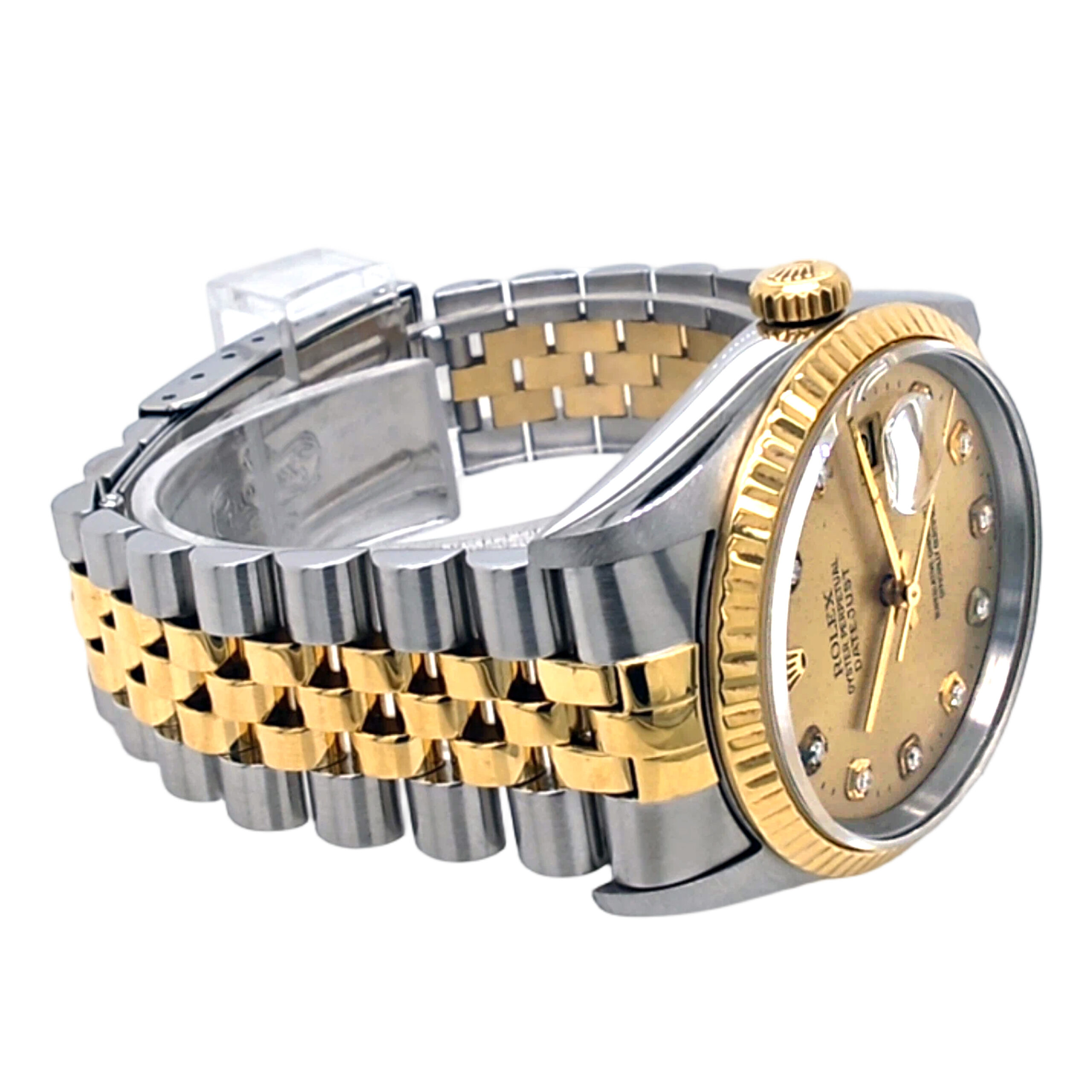 This Rolex Datejust 36 Diamond 16233 watch. Its SKU code is JW2520502. The watch is AUTOMATIC with the main materials STAINLESS STEEL. The case diameter is 36MM.